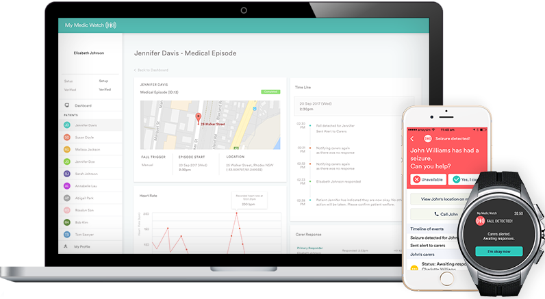 My Medic Watch supports carers and family members by sending real-time alerts when something happens.