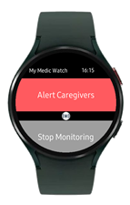 When a fall or a seizure-like movement occurs, My Medic Watch apps detect it using smartwatch sensors and a patented algorithm*.